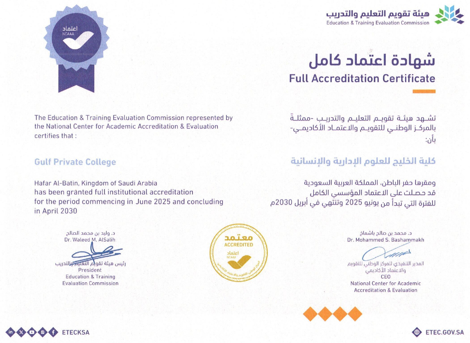 برامج أكاديمية معتمدة، وابحاث علمية وشراكة مجتمعية فاعلة.